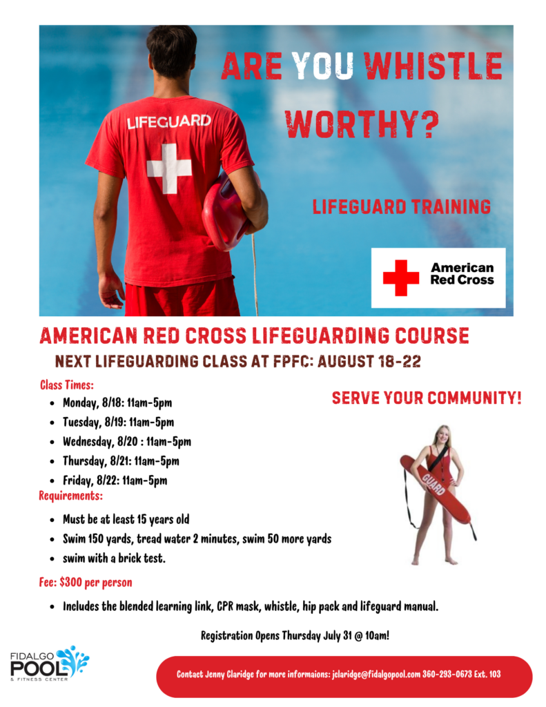 Water Safety Instructor: The purpose of the American Red Cross Water Safety Instructor course is to train instructor candidates to teach course and presentations in the American Red Cross Swimming and Water Safety program by developing their understanding of how to use the course materials, how to conduct training sessions and how to evaluate participants’ progress. Participants must be at least age 16 to participate.